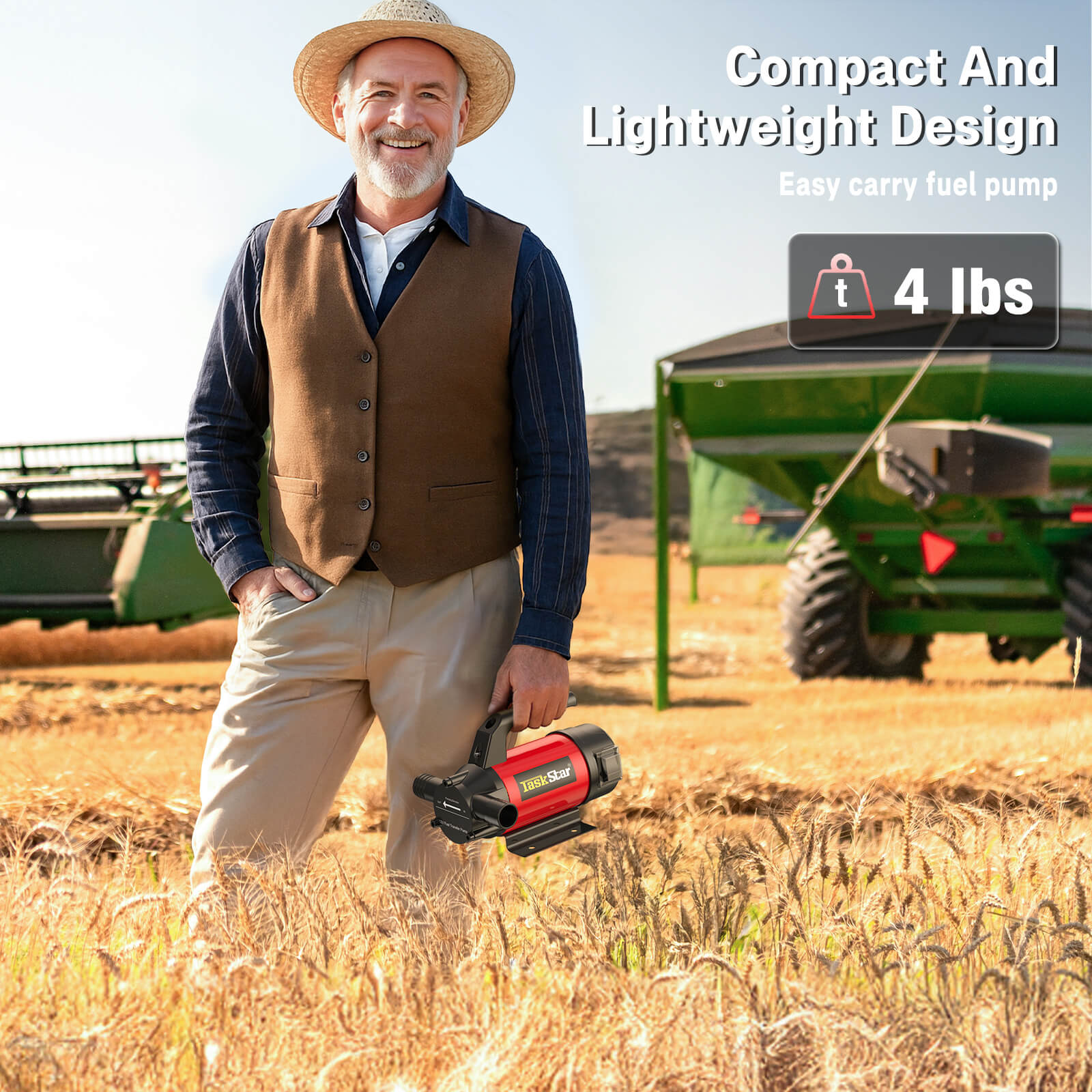 - At just 4 lbs, this compact transfer pump carries easily with one hand for on-site refueling.