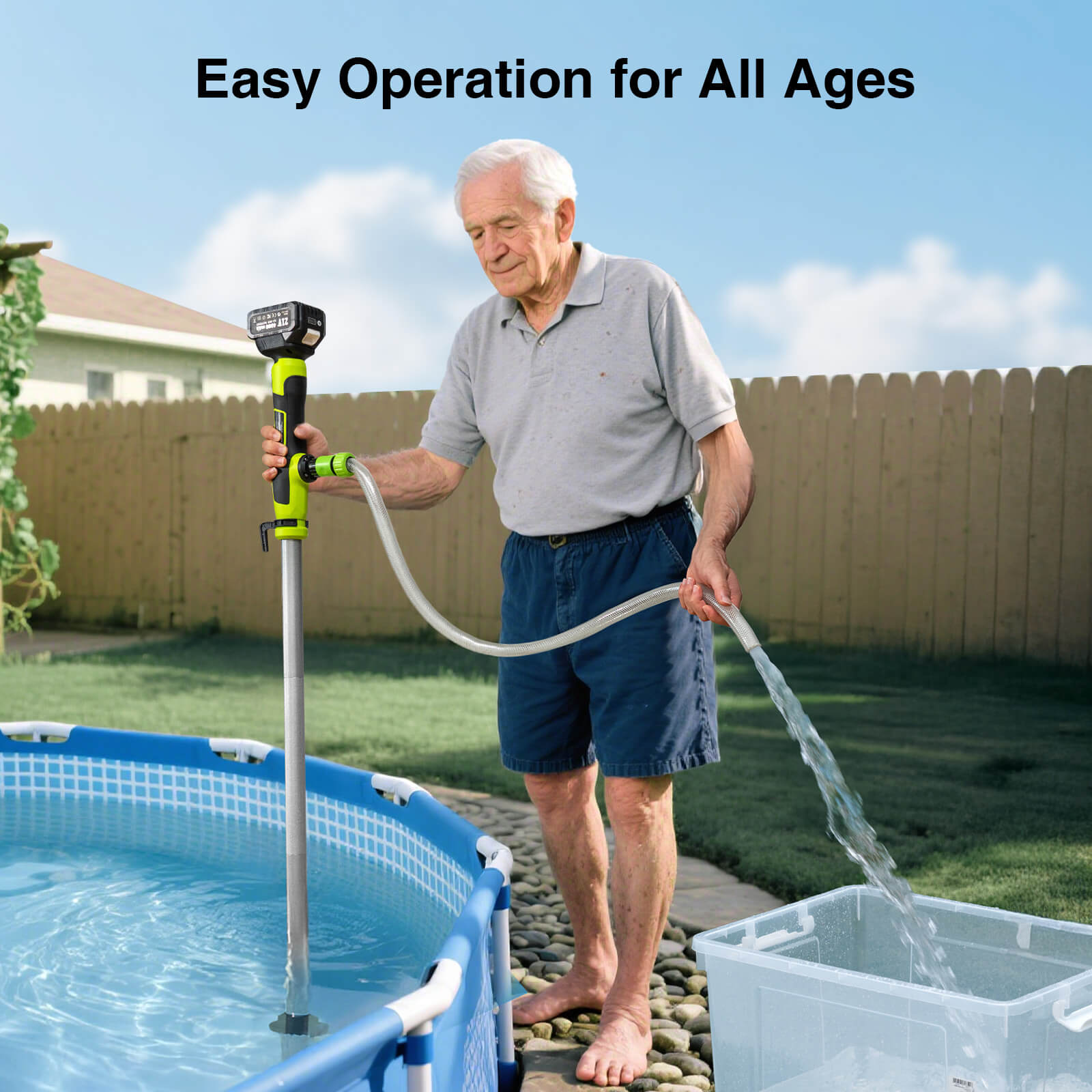 - One-button stick pump moves water fast—up to 720 GPH with 32 ft lift—for pools, gardens, boats and more.